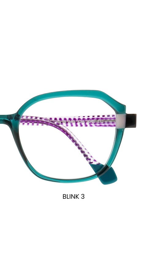 The mood is mischievous with the gleaming BLINK design. These vibrant, surprising glasses offer a subtle look: you sense an optical illusion with a flash on the end piece, giving the glasses a magical aspect. Basic geometric elements combine with a highly fluid, organic design on the front. The perfect model to sparkle.