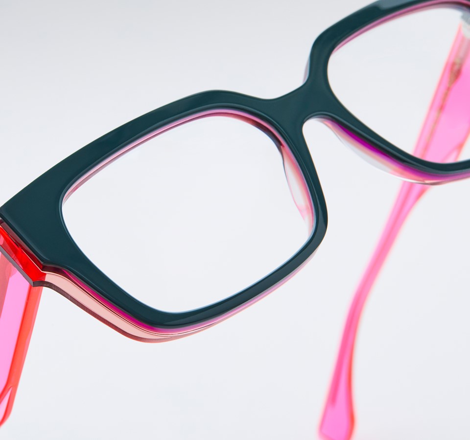 Ultra-cut and sculpted, the frame features staircase-like volumes and deliberately pronounced edges. They evoke thoughts of the industrial process of OFFSET printing where the layers of ink are overlapping and sometimes offset, creating transparencies and colourful vibrations. Machined with diamond cutters and left unpolished, the faces boast an ultra-precise finish that’s both raw and refined. Dare to be charismatic, multiply yourself!