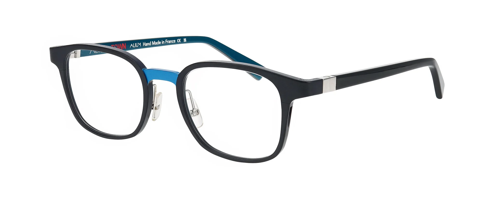 This design is made in France with a classic hinge – the ALIUM brand signature. The bridge has a milled recess to better highlight the colour. Finally, we achieved the endpiece milling with an ALIUM-patented technique.