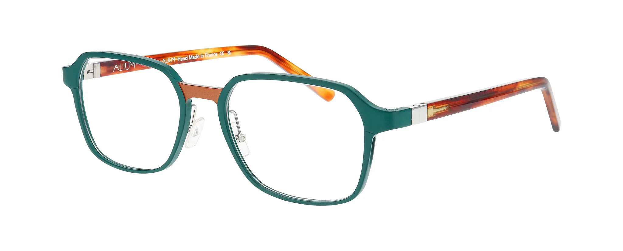 This design is made in France with a classic hinge – the ALIUM brand signature. The bridge has a milled recess to better highlight the colour. Finally, we achieved the endpiece milling with an ALIUM-patented technique.