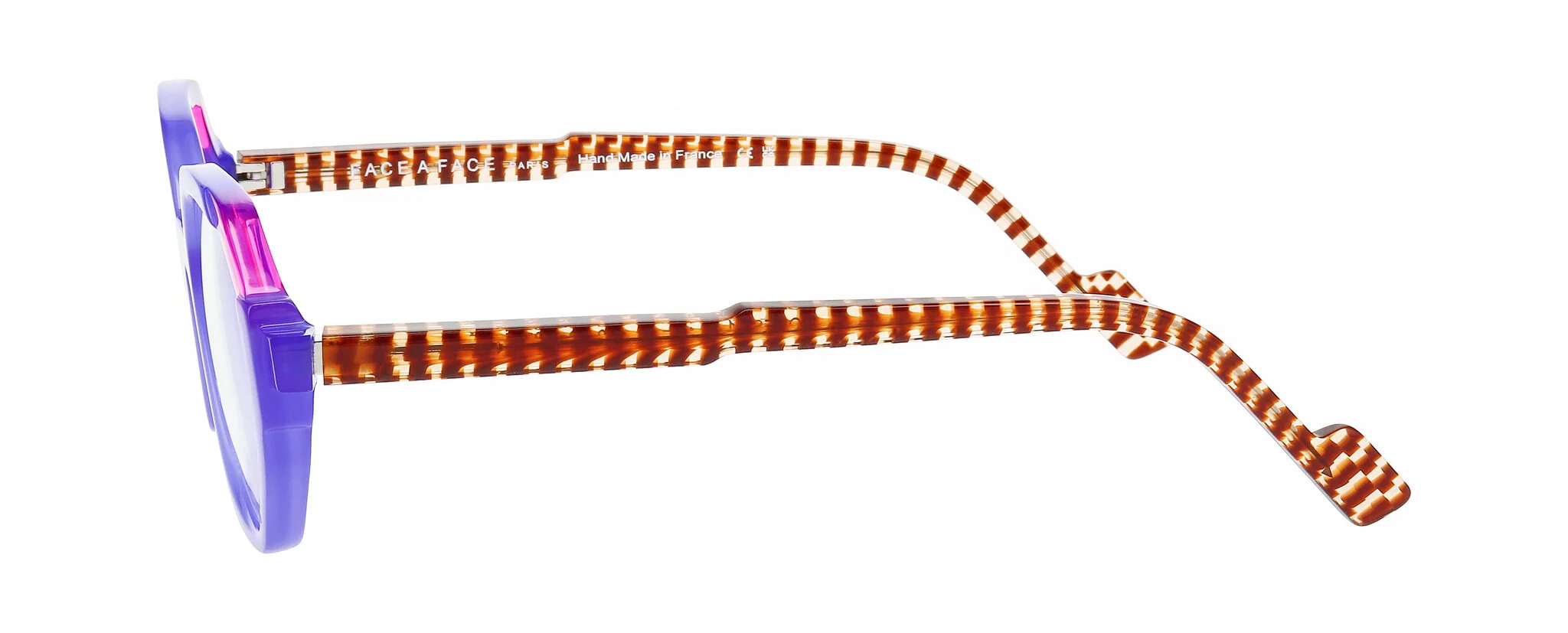 Sculpted front, offset temples