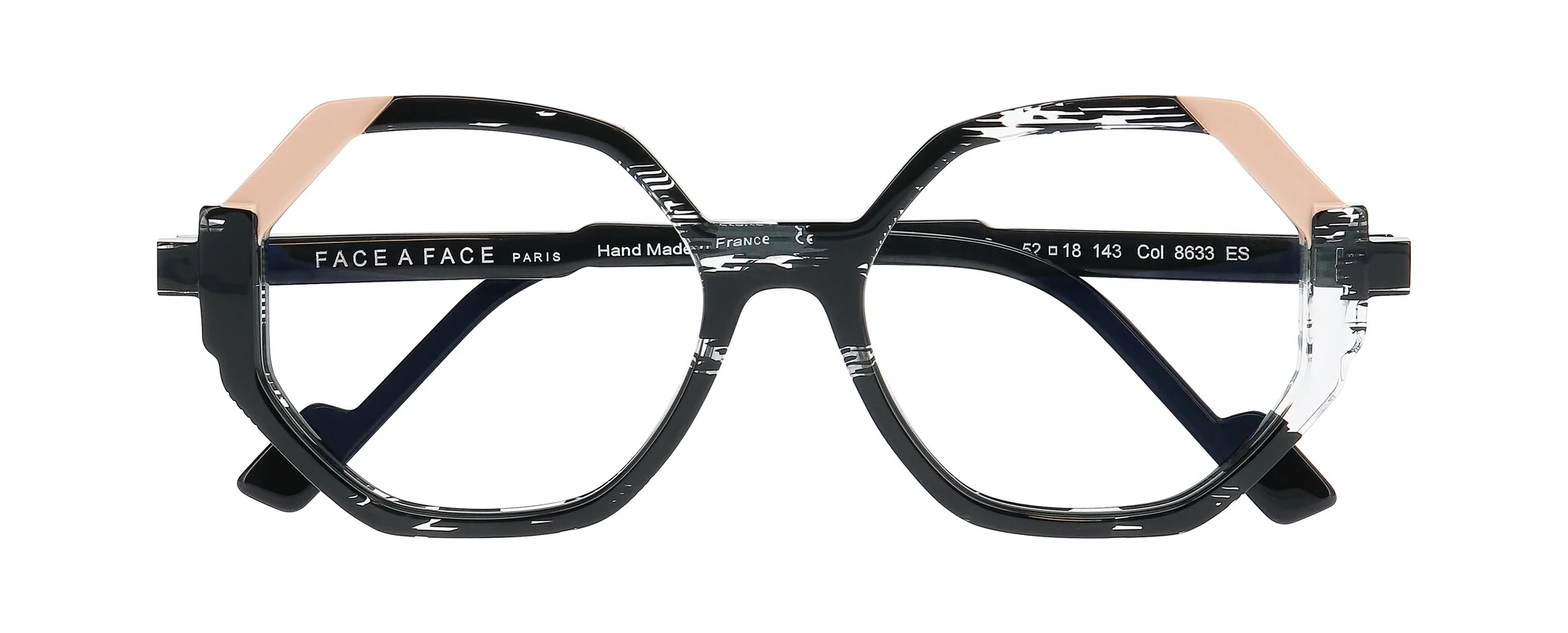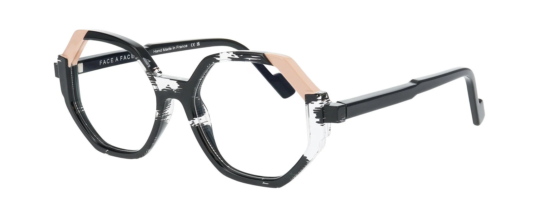 Sculpted front, offset temples