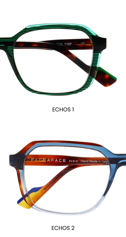 Vibrant. Stunning. The ECHOS design plays with appearances and offers a colour finish that seems to sculpt the frame: sometimes quite visible, sometimes rather subtle, colours seem to resonate in these masculine and mysteriously poetic spectacles. An architectural concept with character!