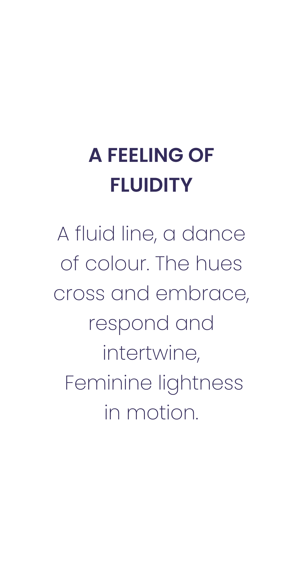 Scroll Follow "FOLLOW. The ballet of shades."A fluid line, a dance of colour.The hues cross and embrace,respond and intertwine,Feminine lightness in motion.