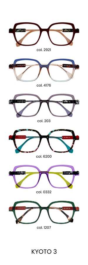 Put art at the heart of your everyday life with KYOTO. These sculptured glasses are inspired by Shiro Kuramata’s iconic armchair with a cylindrical backrest. The creative spirit of the spectacles is emphasised by the geometric purity of the cylinder, which serves as both endpiece and temple. This iconic design is magnified by angular shapes that create a bold and poetic contrast. All roads lead to KYOTO!