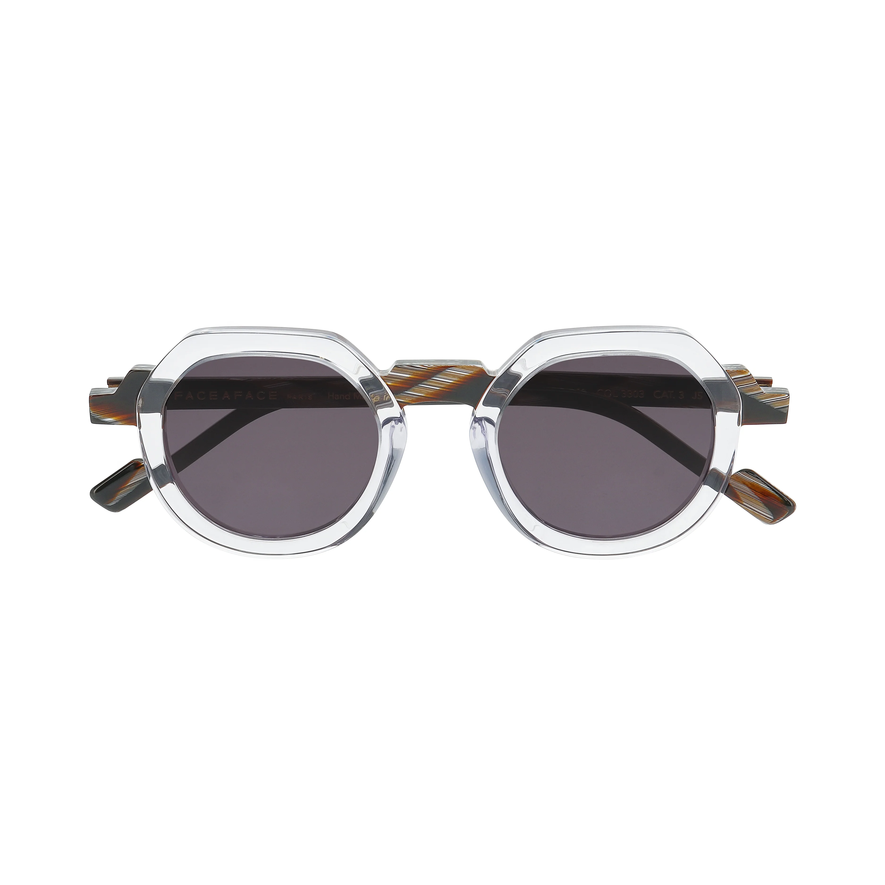Separated-eye aesthetic with graphic motifs on bridge and endpieces.