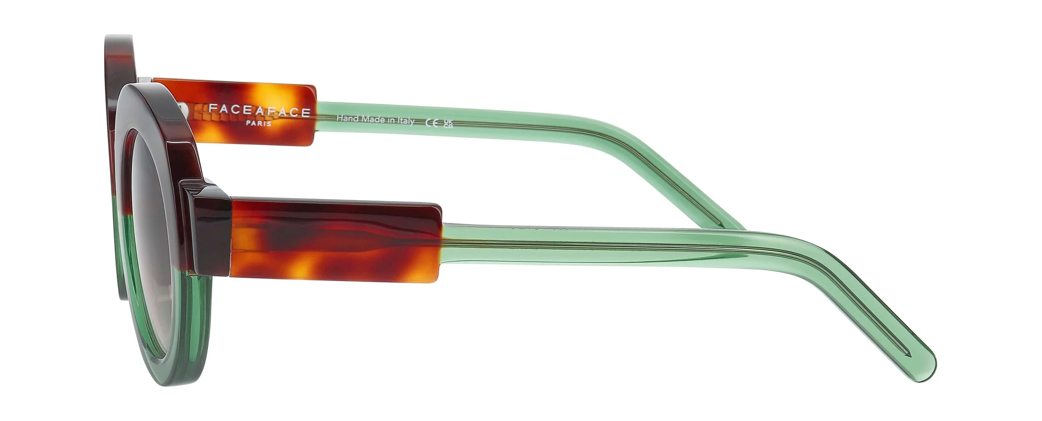 The rounded temple line seems to thread into the bold, square front.