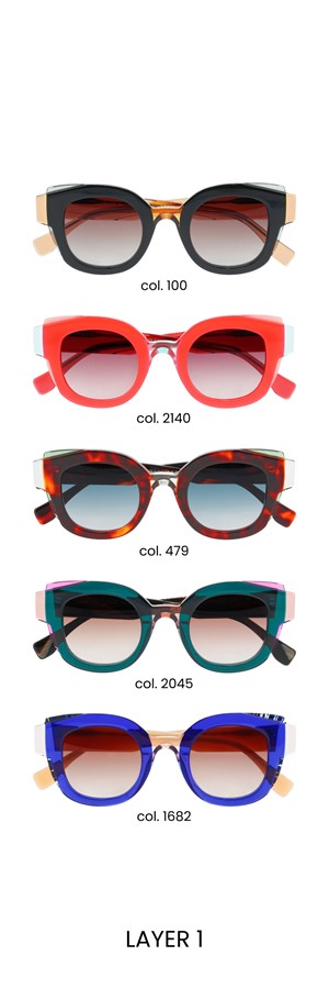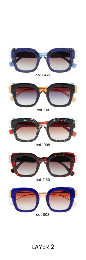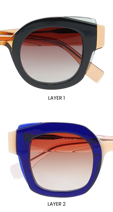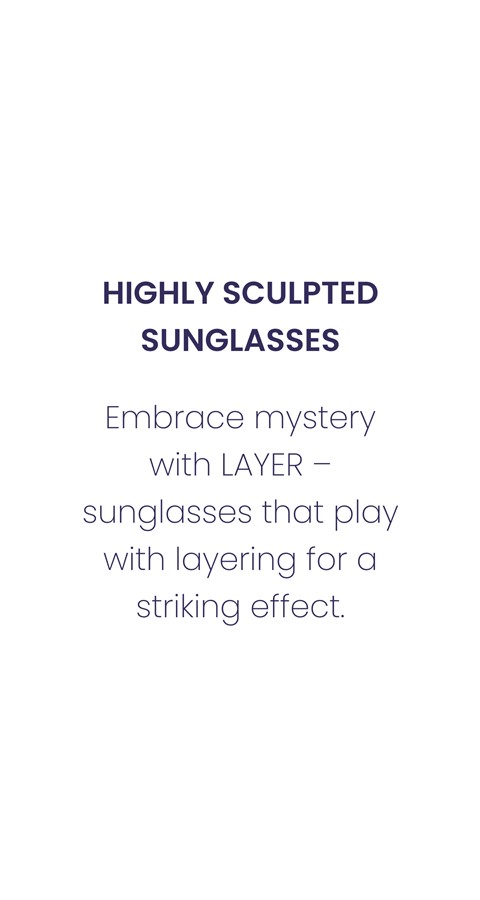 Embrace mystery with LAYER – sunglasses that play with layering for a striking effect. Two shapes intertwine, two colours fuse to reveal a third, creating a unique visual alchemy. The finely sculpted details of the wings add a subtle touch of sophistication. With LAYER, let your look speak for itself while maintaining an irresistible enigmatic aura.