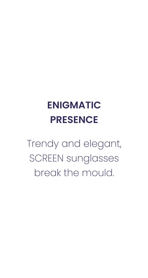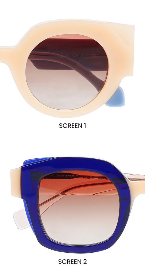Trendy and elegant, SCREEN sunglasses break the mould. The deeply set lenses and extreme front milling give this concept a bold presence – minimalist yet sharp. This sculpted design reveals the emotional power of colour and material through its purity and transparency. The sculpted details evoke an image of a screen or a film, perhaps the film of your future!