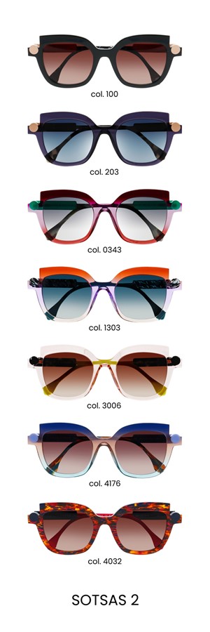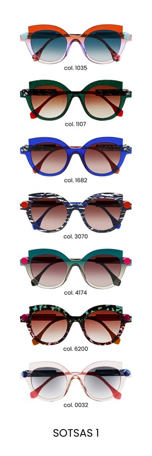 A mischievous and playful tribute to the work of Ettore Sottsass, these sunglasses are as cheeky as they are expressive! Exploring the middle ground between object and sculpture, they affirm their off-beat and creative spirit through the use of a cylinder that can be interpreted either as an endpiece or a temple, only to showcase itself on the frame front as a graphic accentuating element. Mischievous and a bit crazy, the SOTSAS models are just as free as you are!