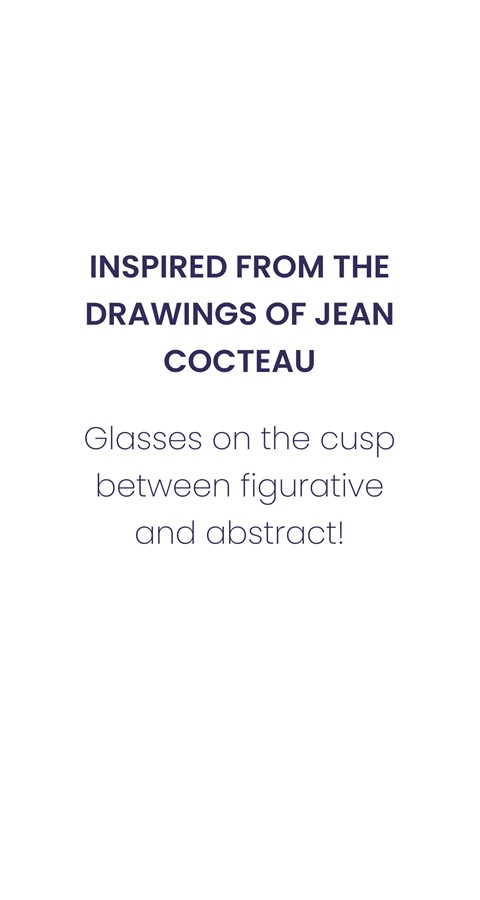 Les BOCCA COCTO puisent leur inspiration dans les dessins de Jean Cocteau : un geste libre et en même temps structuré stylise la monture. Un mouvement de croisement graphique parcourt ces lunettes dont l’intersection est soulignée par un losange. On retrouve une chaussure Bocca figurative à la forme très dansante. Des lunettes à la lisière du figuratif et de l’abstrait !
