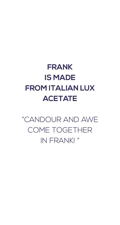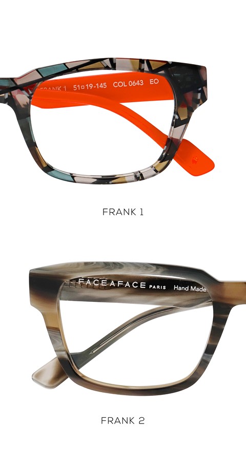Une petite et une grande rectangle aux formes à la fois douces et heurtées révèlent toute la beauté des coloris et matières exclusives FACE À FACE : un gris mosaïque déstructuré est contrasté par un rouge-orangé ; tandis que la matière « ligne lumière » est revisitée sur un bleu roi opaque dans un esprit très tempête. Franchise et surprise sont au rendez-vous avec les FRANK !