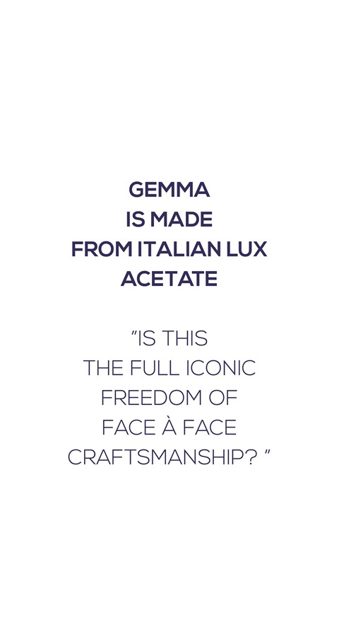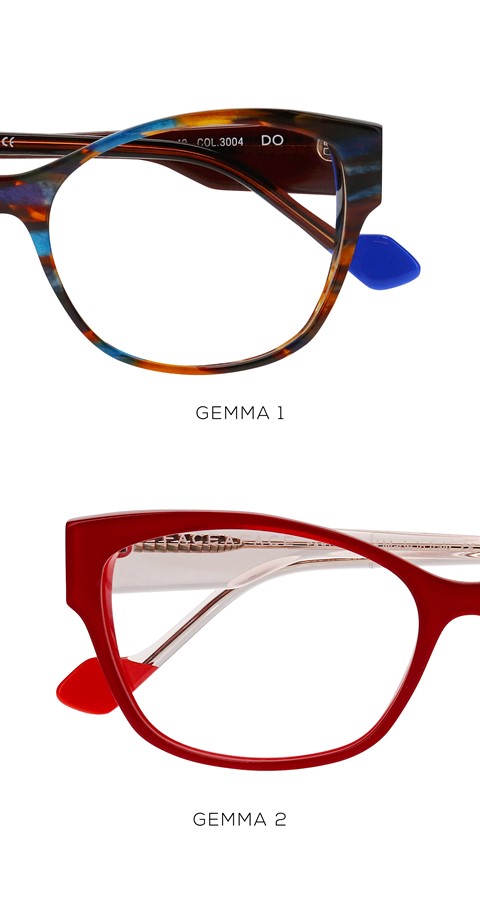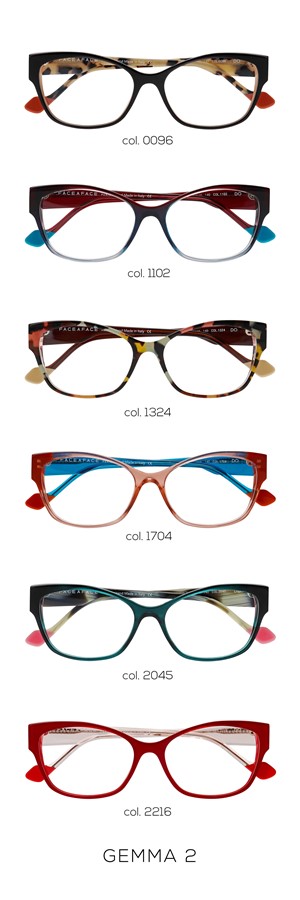 Parfaitement balancées, les GEMMA inventent un équilibre délicat entre évidence et sophistication : une carrée haute arrondie et une rectangle chat à tenon haut donnent de la stature et du caractère à ce modèle féminin. Est-ce la hauteur de la branche qui cultive ce charisme unique ? Ce détail coloré à l’arrière des tenons qui vient aiguiser les formes ? Ce plein et délié iconique du savoir-faire FACE À FACE ?