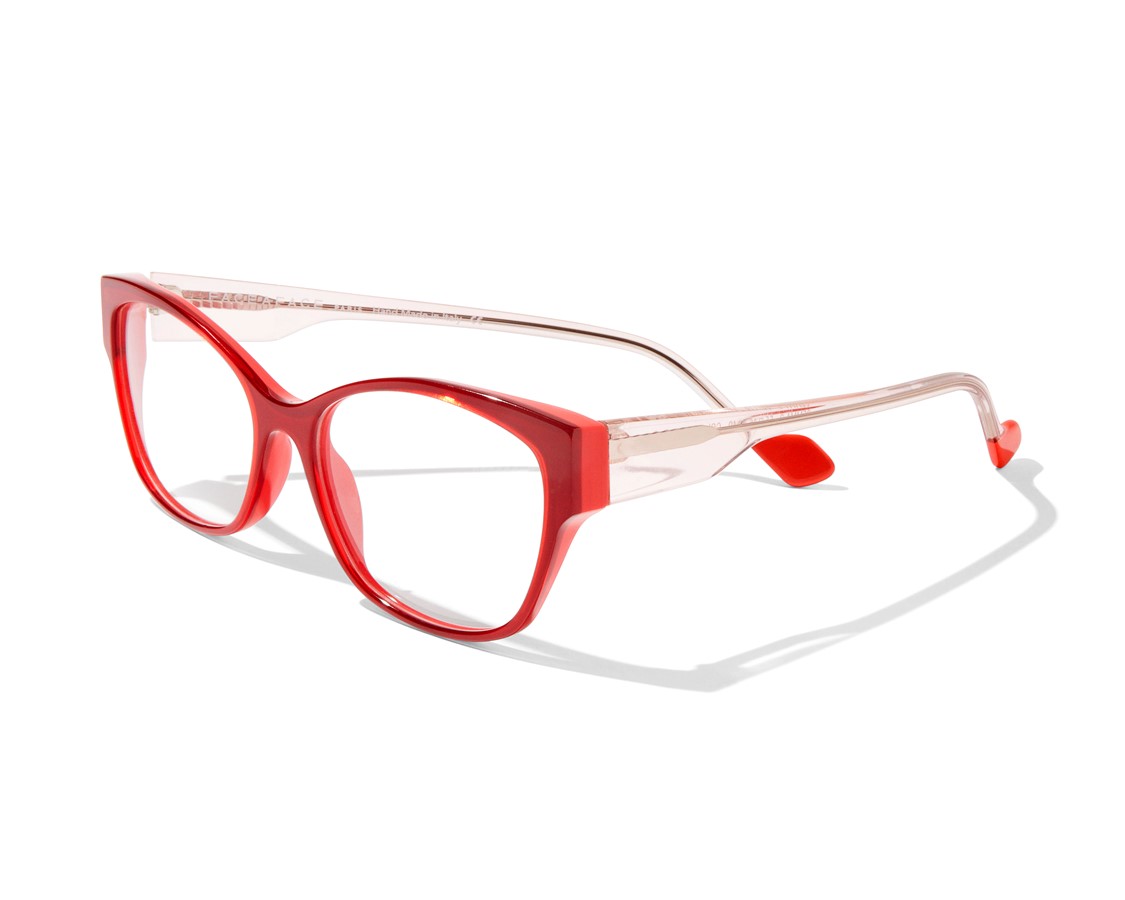 Cette apparente simplicité vient se révéler et s’affirmer dans des coloris et matières exclusifs FACE À FACE : une écaille Tiziano est ainsi relevée par un détail coloré bleu Klein qui trouve son écho en bout de spatule, tandis qu’un néo-rouge profond s’allège dans une branche transparente. Résolument contemporaines !