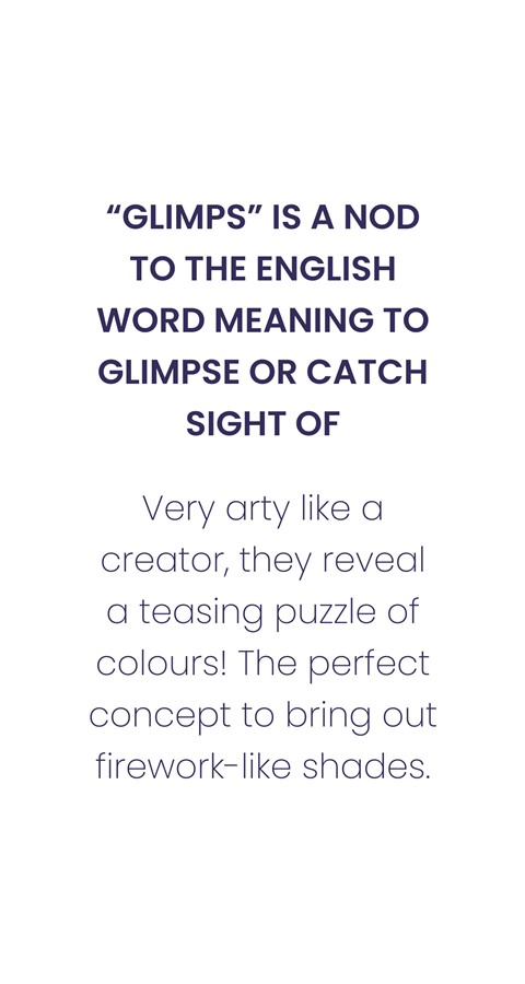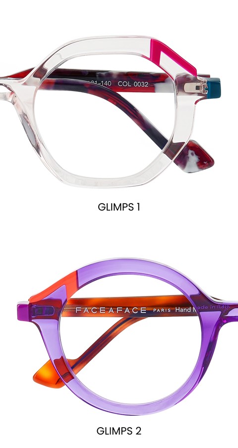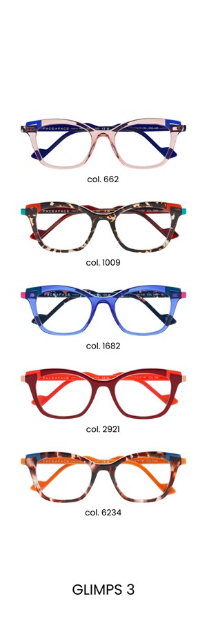 Vous avez demandé du ludique ? Les GLIMPS sont faites pour vous : jouant sur les détails et les couleurs, ces lunettes épaisses et animées (qui iront aux petits visages), se distinguent par l’introduction d’un petit motif en chevron qui vient animer et compléter la forme et le tenon de ces optiques féminines. Très arty et créateur, elles dévoilent un puzzle taquin de couleurs ! Le parfait concept pour faire surgir des teintes façon feu d’artifice.