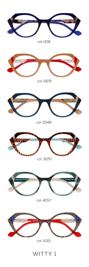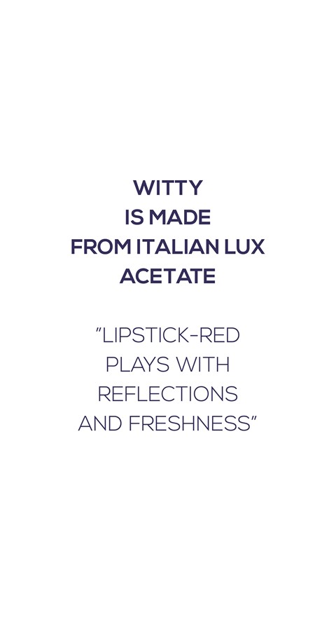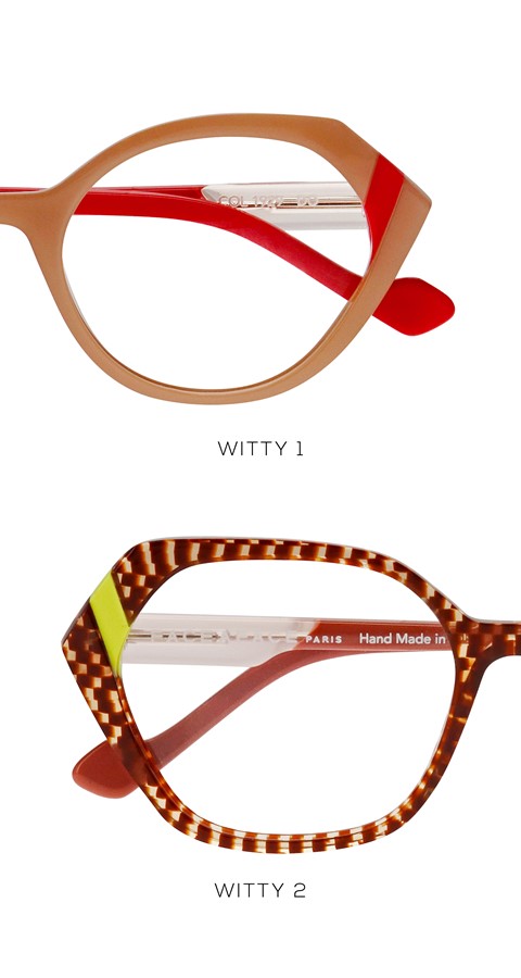 Pleines d’esprit, de lumière et de caractère, ces optiques cultivent l’audace et la vitalité ! À la manière d’un rayon de soleil impertinent, la couleur-lumière transperce et irradie les WITTY pour les styliser de manière géométrique : un sillon de couleur en relief vient dessiner les volumes et ouvrir la lunette pour illuminer le regard.