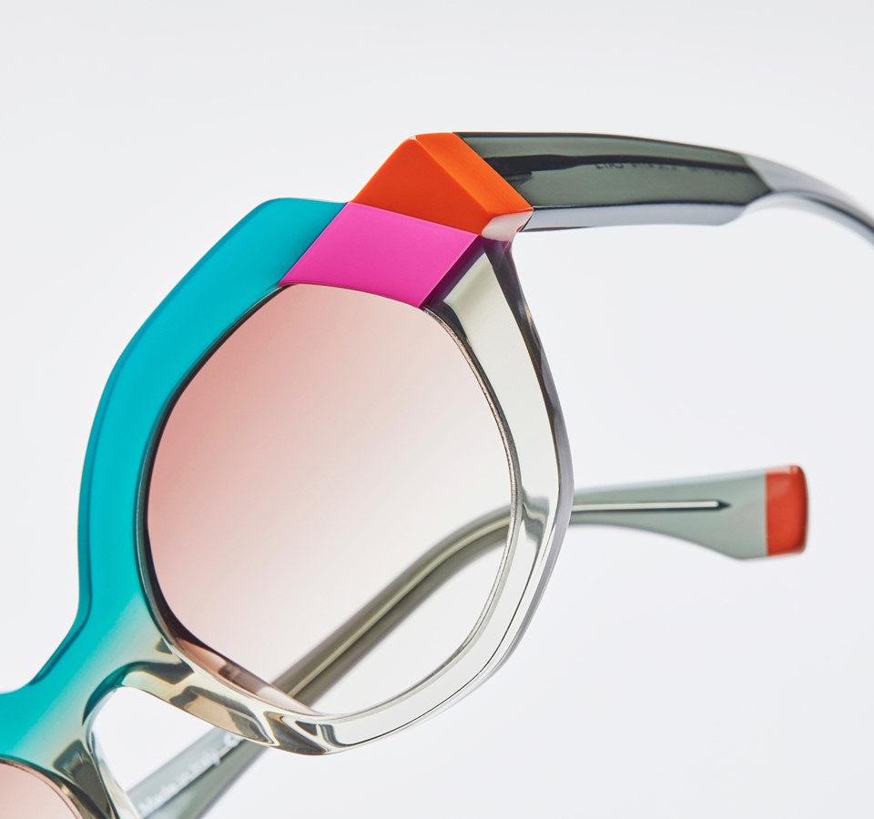 Des imbrications géométriques, des couleurs kaléidoscopiques, de fortes épaisseurs sur la face où les matières explosent : autant d’arguments aussi inattendus qu’élégants qui font de ce concept un vrai statement mode. Vibrantes et évidentes !